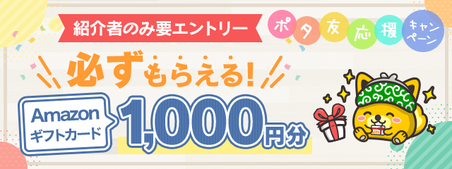 - キャンペーン期間中(~11/30日)に紹介経由でポイントインカムに入会する & ポイント交換申請すればAmazonギフト券1,000円分を必ずもらえる。